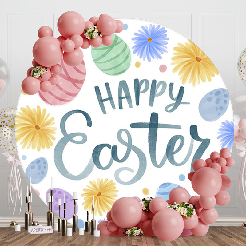 Color Chrysanthemum Eggs Round Happy Easter Backdrop