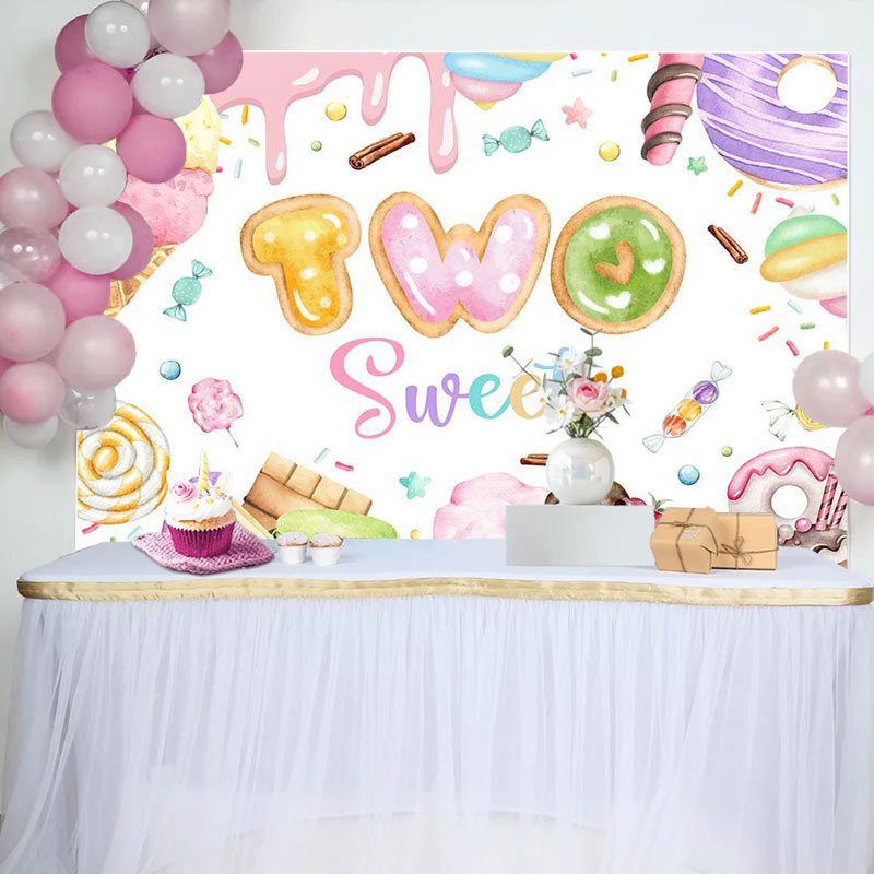 Colorful Candyland Cream Two Sweet Birthday Backdrop
