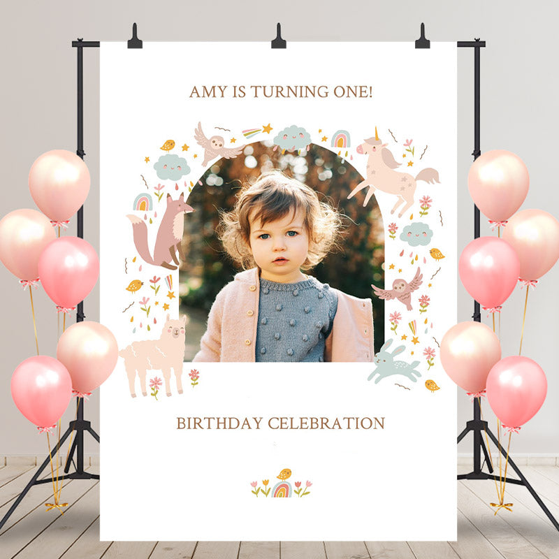 Cute Animal Birthday Celebration Custom Photo Backdrop