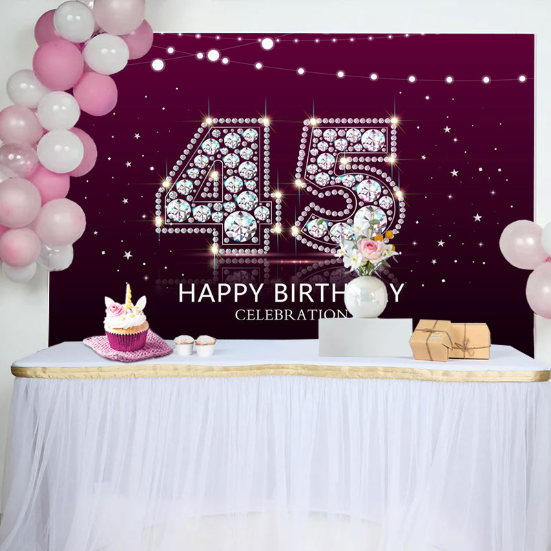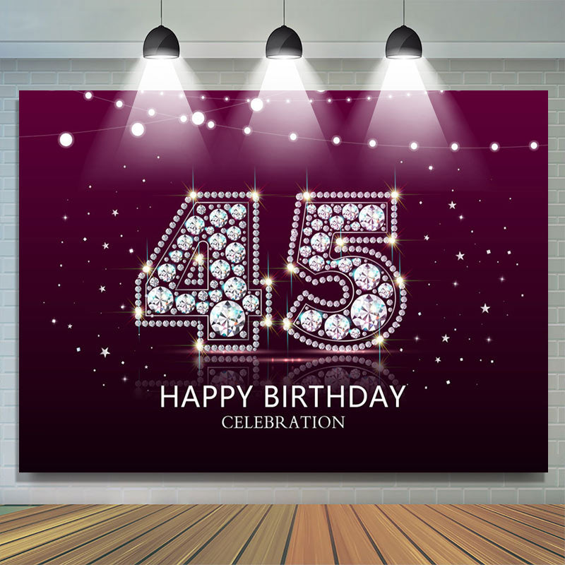 Elegant Purple Diamond Glare 45th Birthday Backdrop