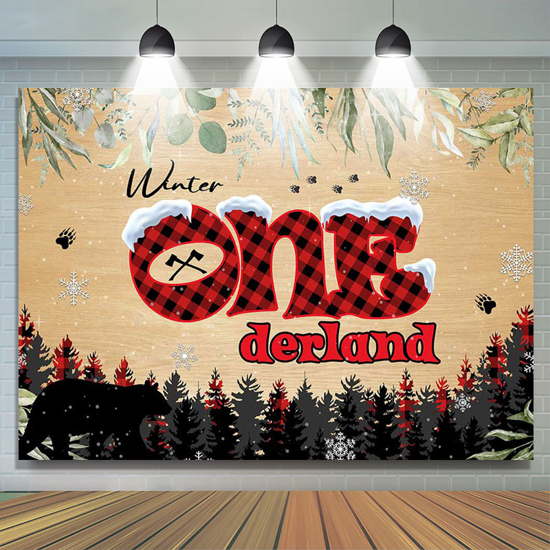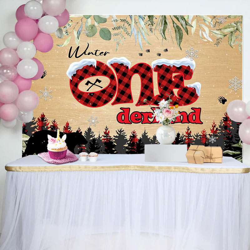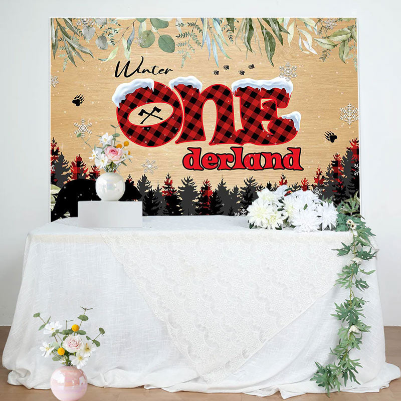 Forest Bear Winter Onederland 1st Birthday Backdrop