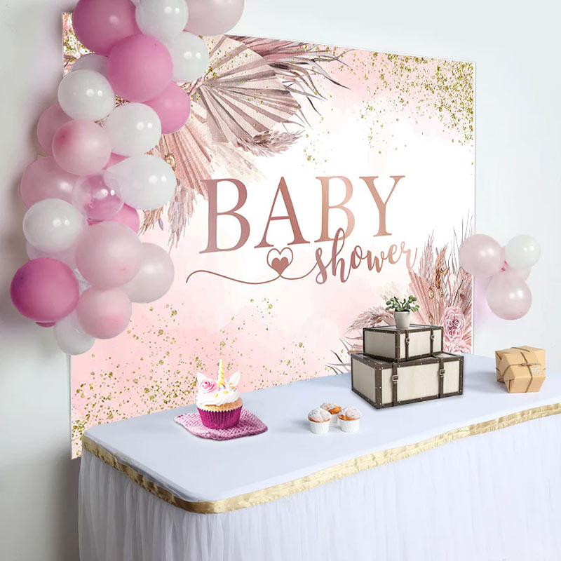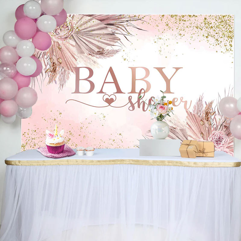 Gold Glitter Pink Boho Floral Baby Shower Backdrop