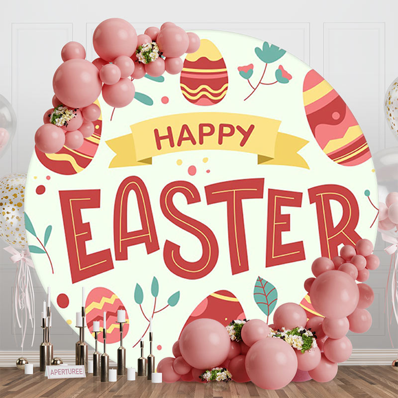 Light Green Red Eggs Round Happy Easter Backdrop