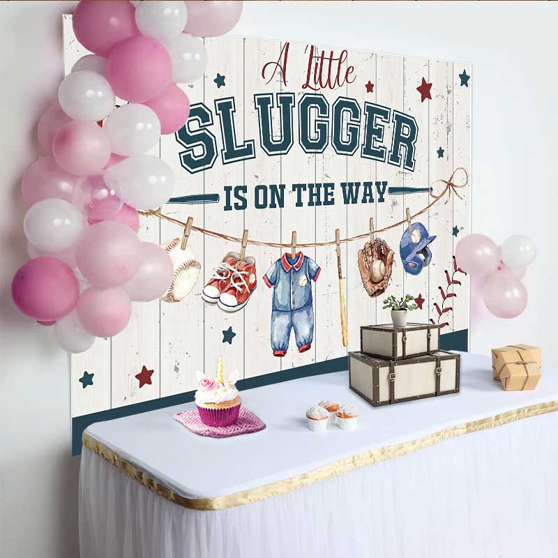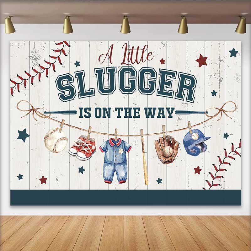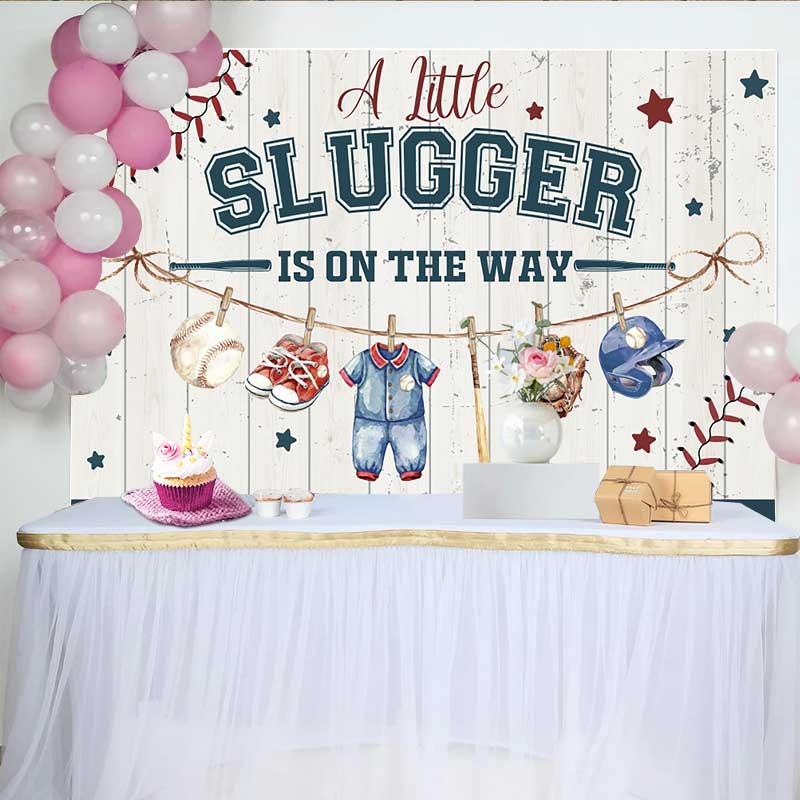 Lofaris A Little Slugger Baby Shower Backdrop, Baseball Theme Newborn Boy Party Decoration