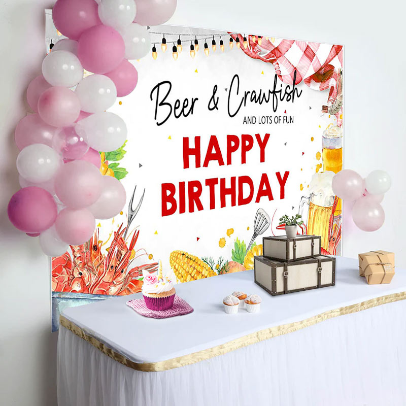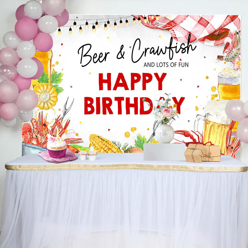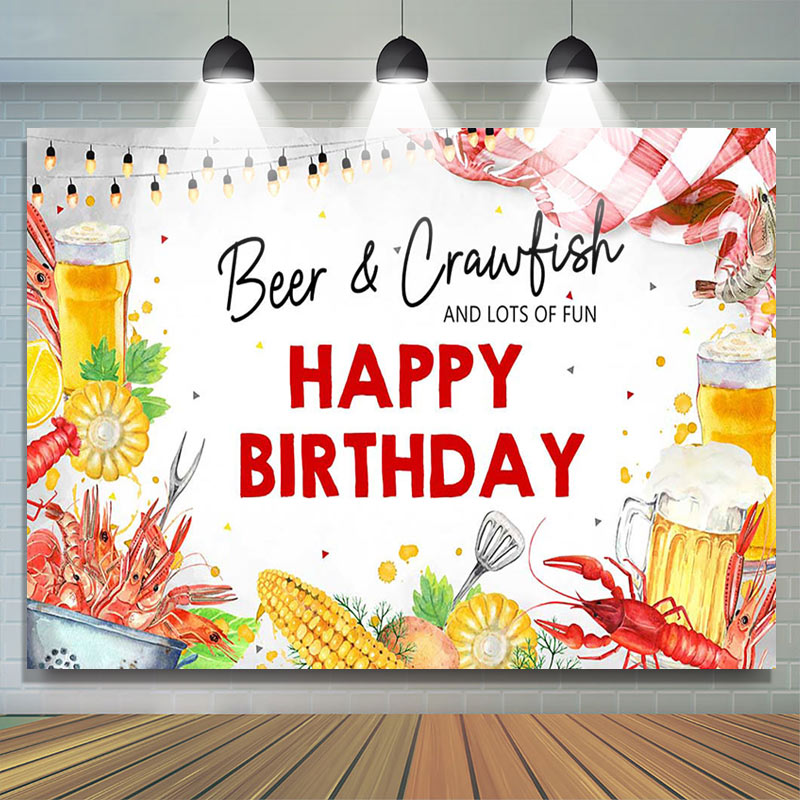 Lofaris Beer Crawfish Corn Camping Happy Birthday Backdrop