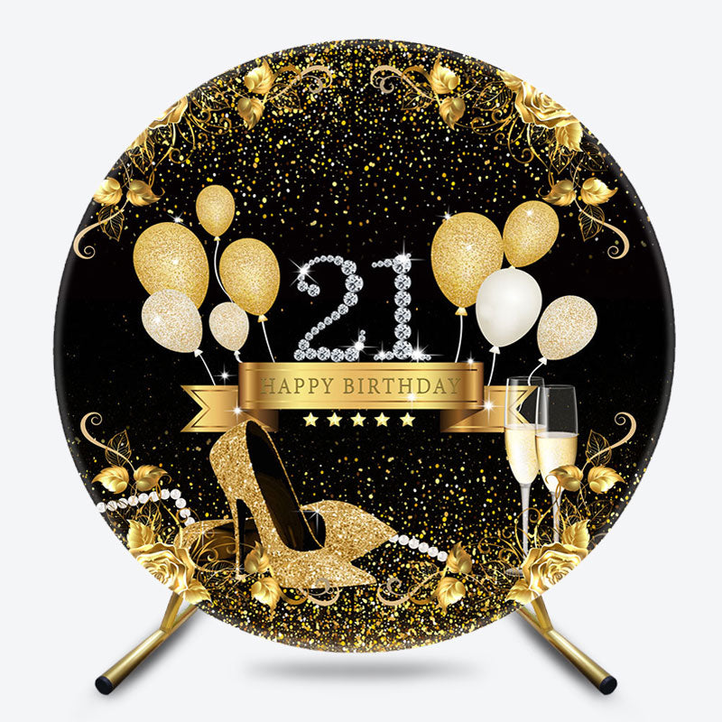 Lofaris Black Gold Balloons Round 21th Birthday Backdrop