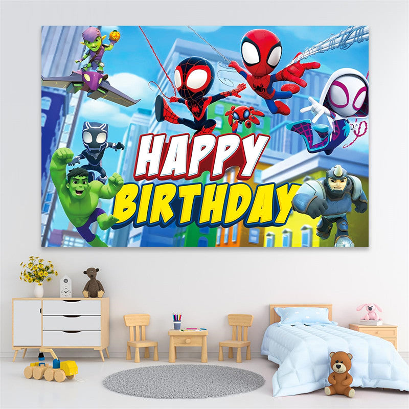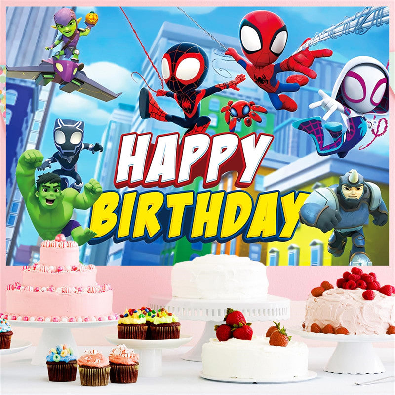 Lofaris Blue Hero Happy Birthday Backdrop Party for Boy