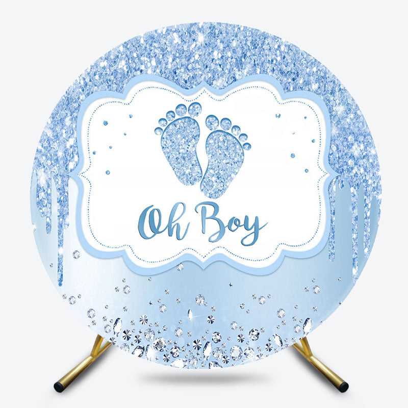 Lofaris Blue Oh Boy Footprint Round Baby Shower Backdrop