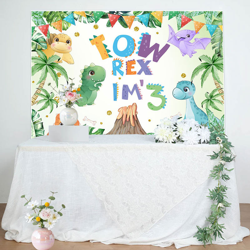 Lofaris Cartoon Colorful Dinosaurs 3rd Birthday Backdrop