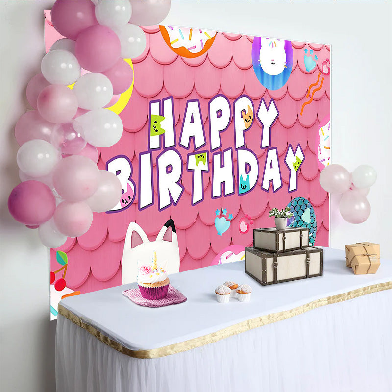 Lofaris Cartoon Dollhouse Birthday Party Backdrop for Girl