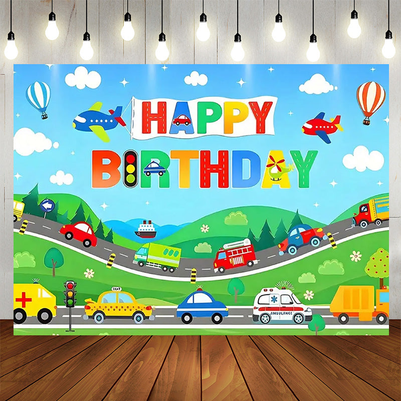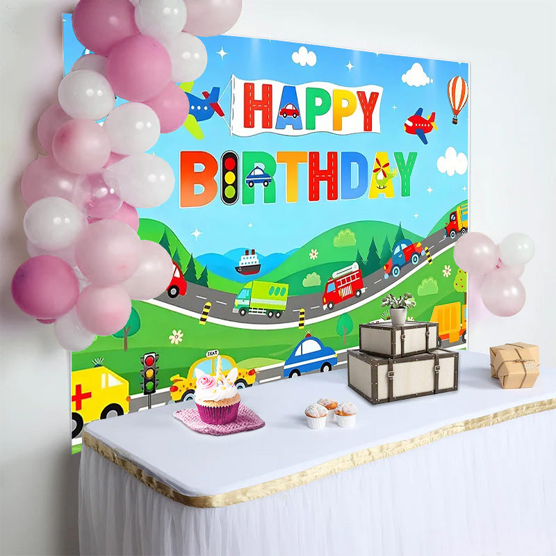 Lofaris Cartoon Transportation Car Birthday Backdrop for Boy