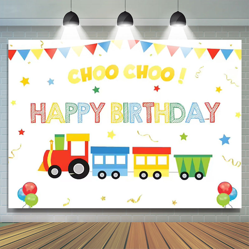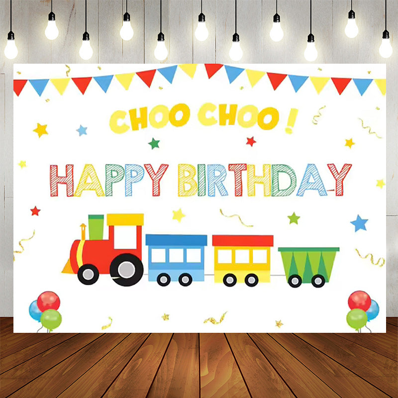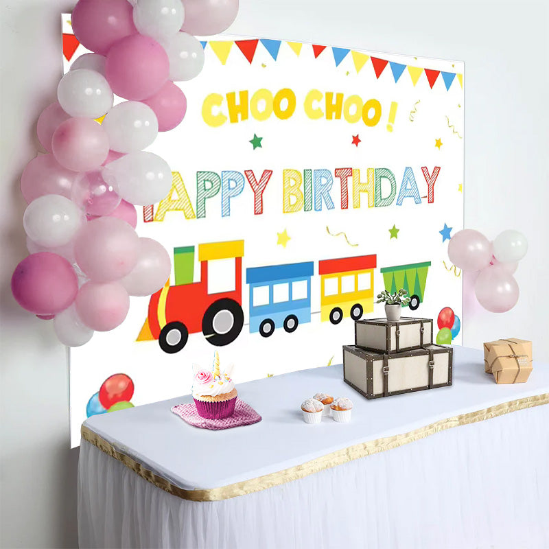 Lofaris Choo Choo Cartoon Train Birthday Party Backdrop for Boy