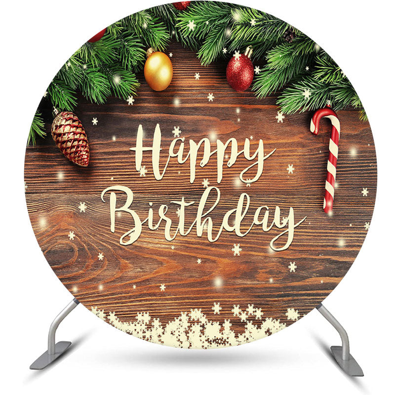 Lofaris Christmas Vibe Wooden Round Happy Birthday Backdrop