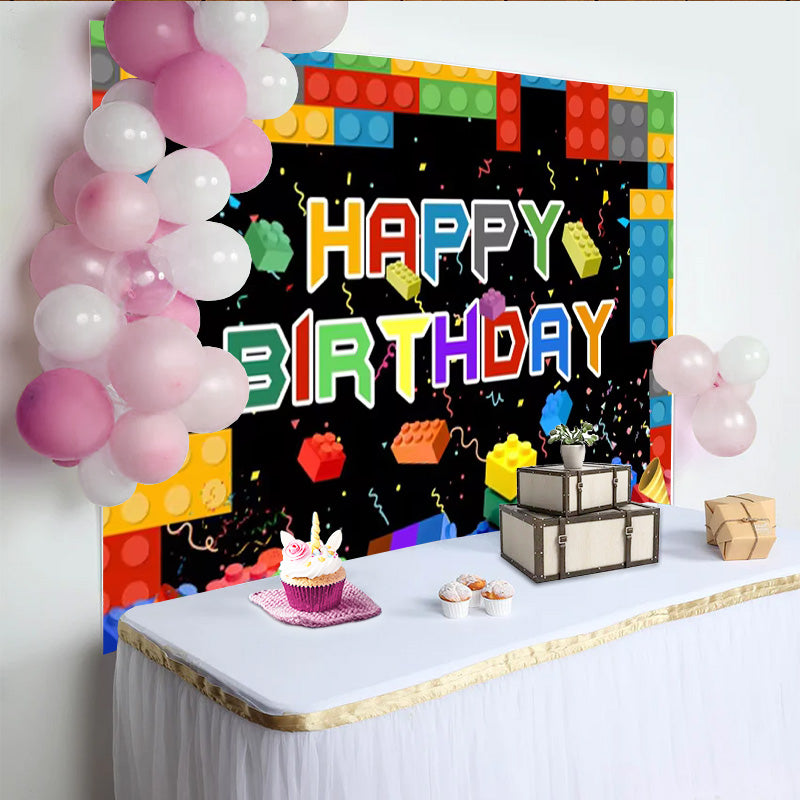 Lofaris Colorful Building Blocks Birthday Party Backdrop for kids