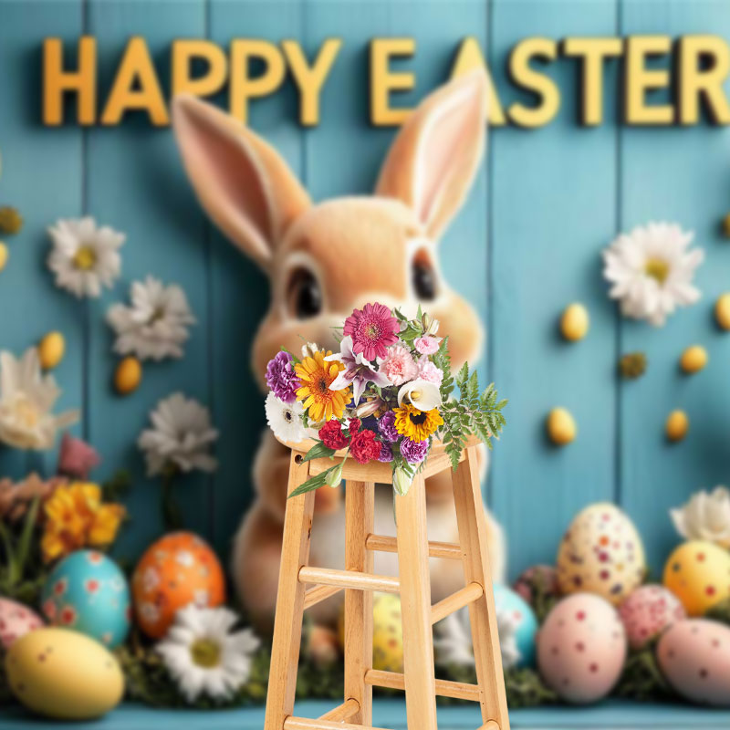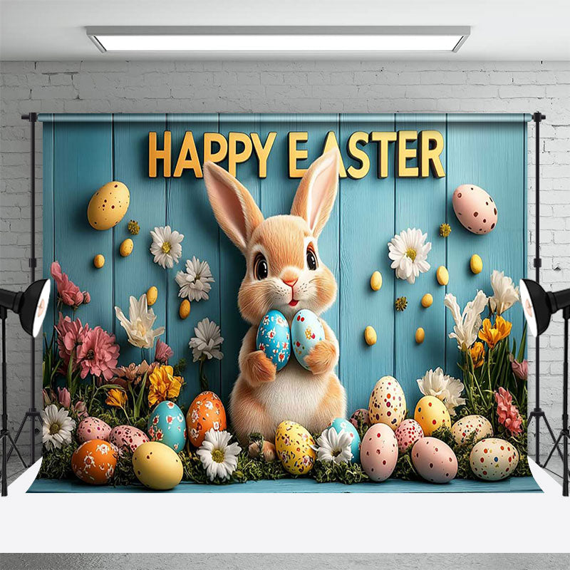 Lofaris Colorful Eggs Floral Bunny Blue Wall Easter Backdrop