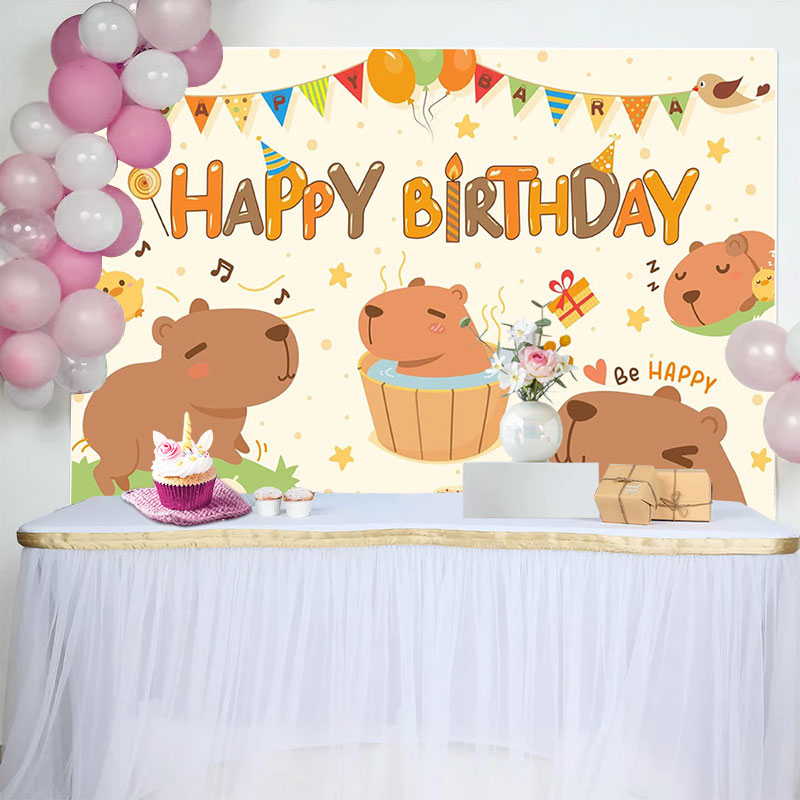 Lofaris Cute Capybara Happy Birthday Backdrop for Kids