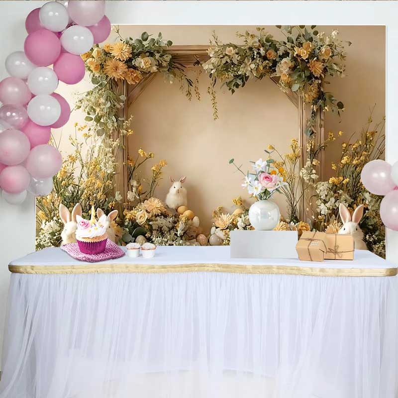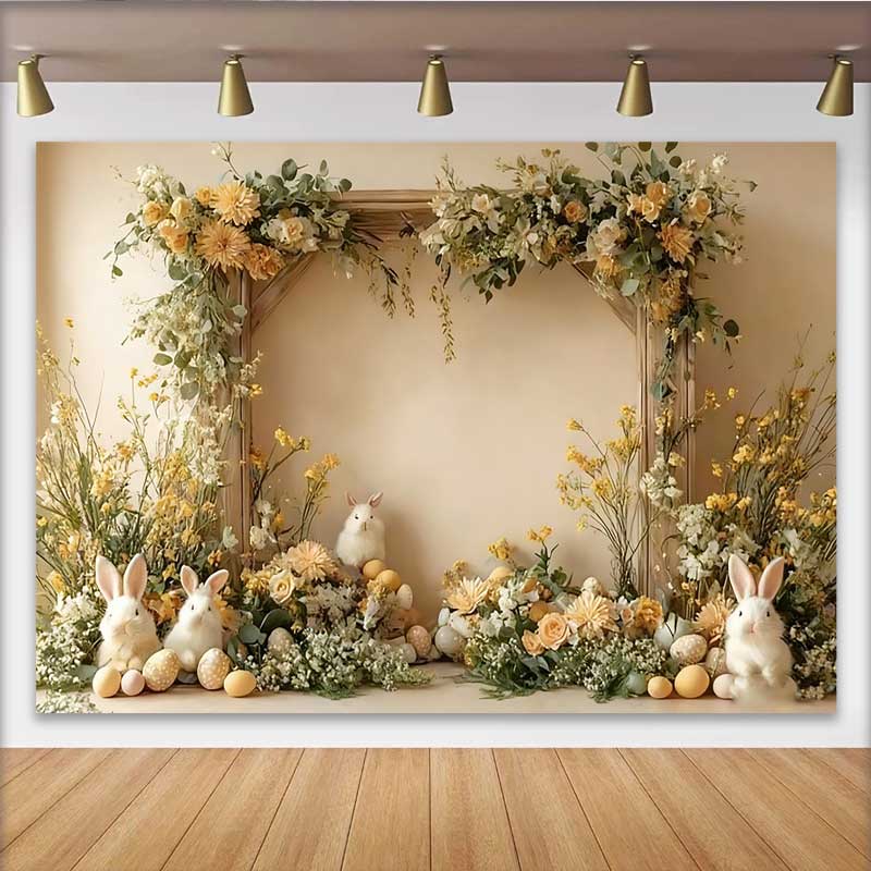 Lofaris Easter Bunny and Yellow Floral Backdrop, Spring Garden Rabbit and Eggs Party Decoration