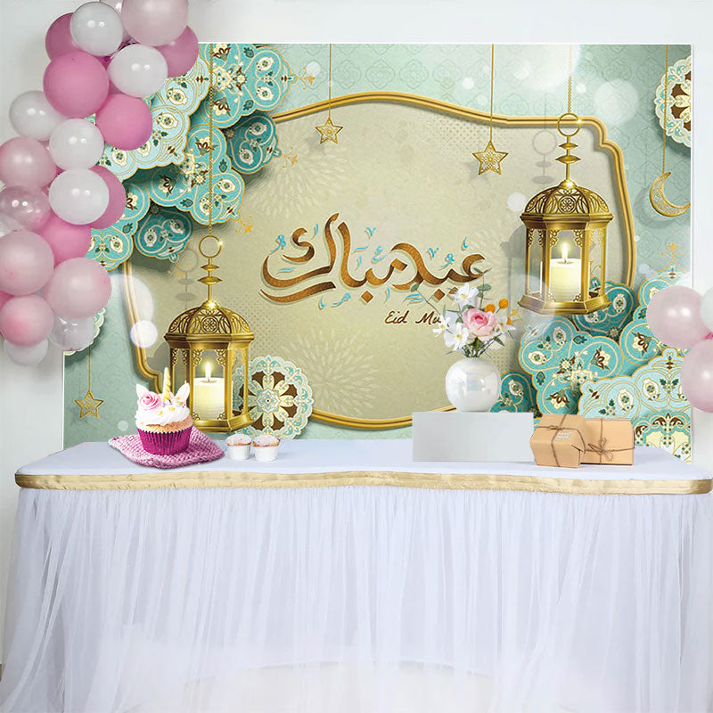Lofaris Eid Ramadan Mubarak Green Holiday Backdrop