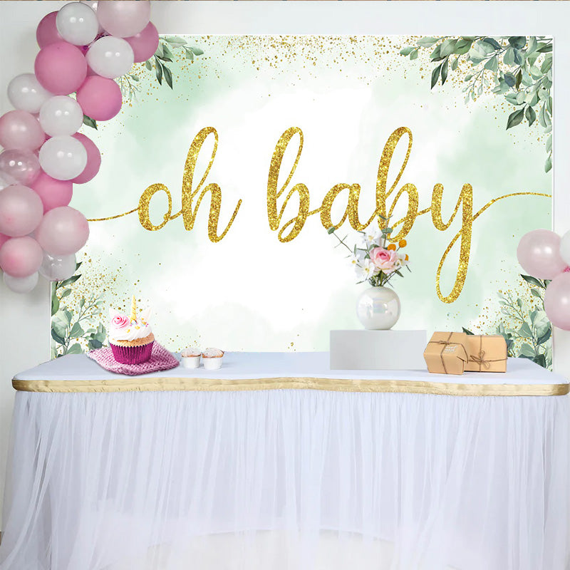 Lofaris Eucalyptus Greenery and Gold Glitter Baby Shower Backdrop, Elegant Oh Baby Party Decoration