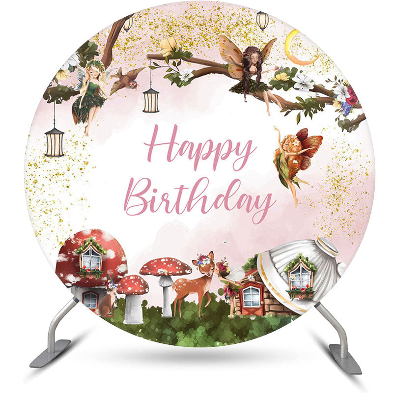 Lofaris Fairy Floral Mushroom Round Happy Birthday Backdrop