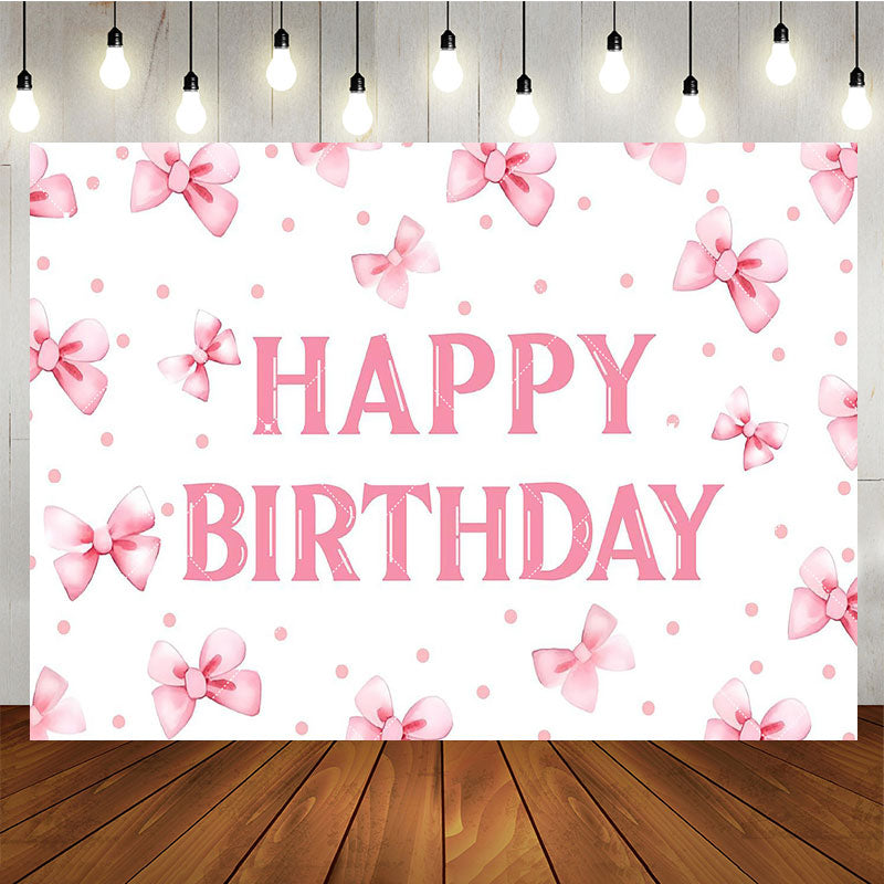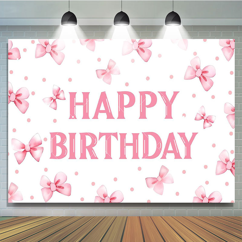 Lofaris Glitter Pink Bow Happy Birthday Backdrop for Girls