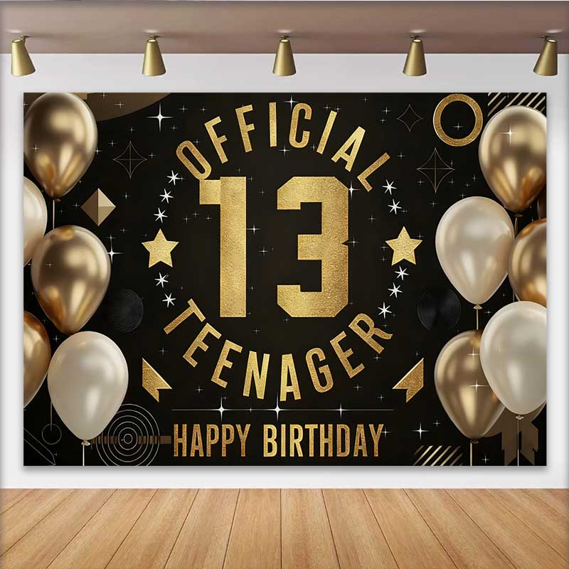 Lofaris Gold and Black Official Teenager 13th Birthday Backdrop, Modern Graphic 13 Milestone Party Decor
