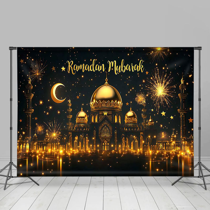 Lofaris Gold Sparkle Night Castle Ramadan Mubarak Backdrop