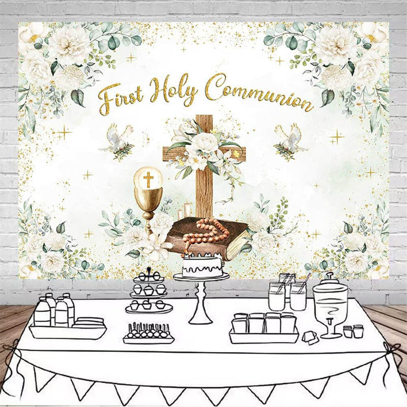 Lofaris Green First Holy Communion Backdrop Backdrop