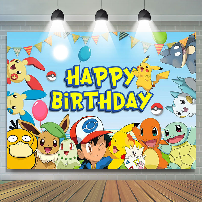Lofaris Happy Birthday Party Poke Backdrop Decoration Kids Party