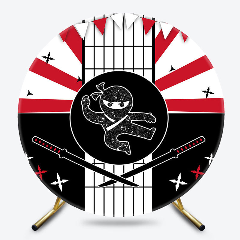 Lofaris Japanese Samurai Ninja Round Happy Birthday Backdrop