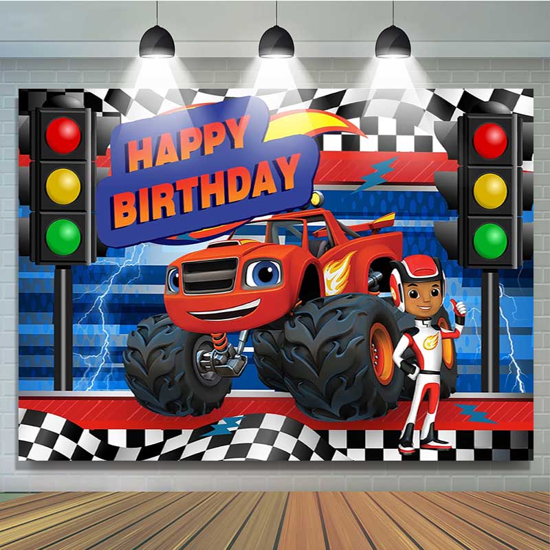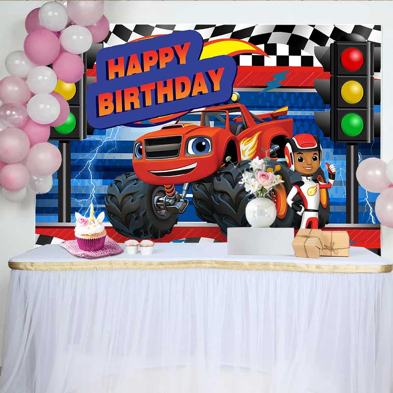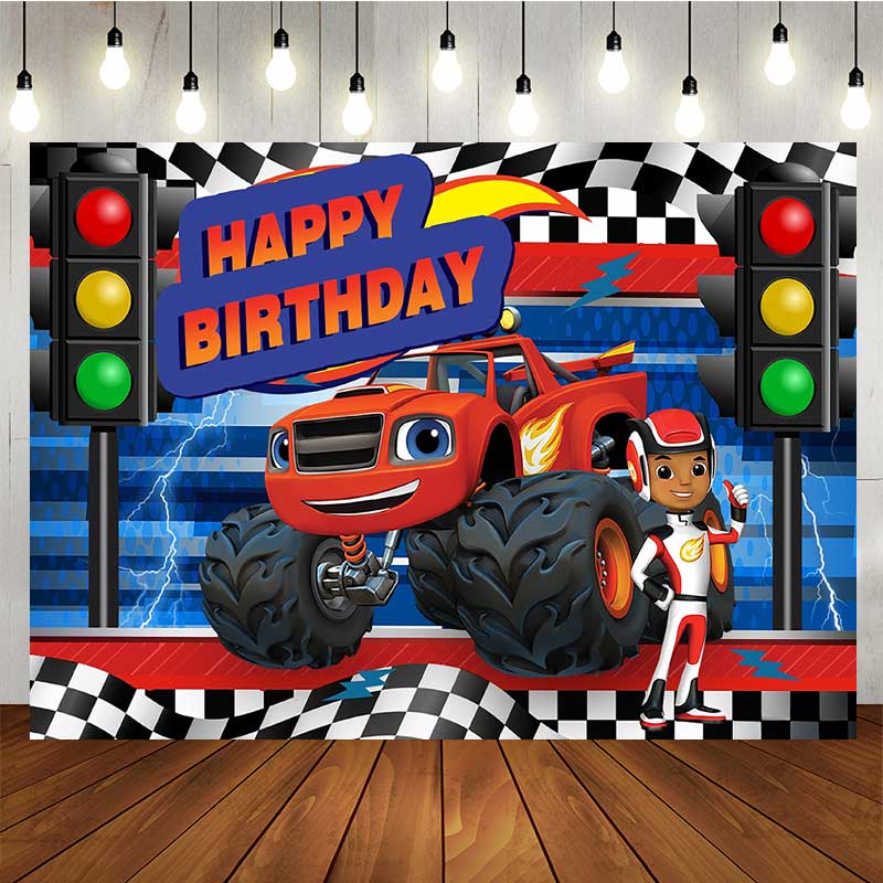 Lofaris Monster Vehicle Happy Birthday Backdrop for Boys Party