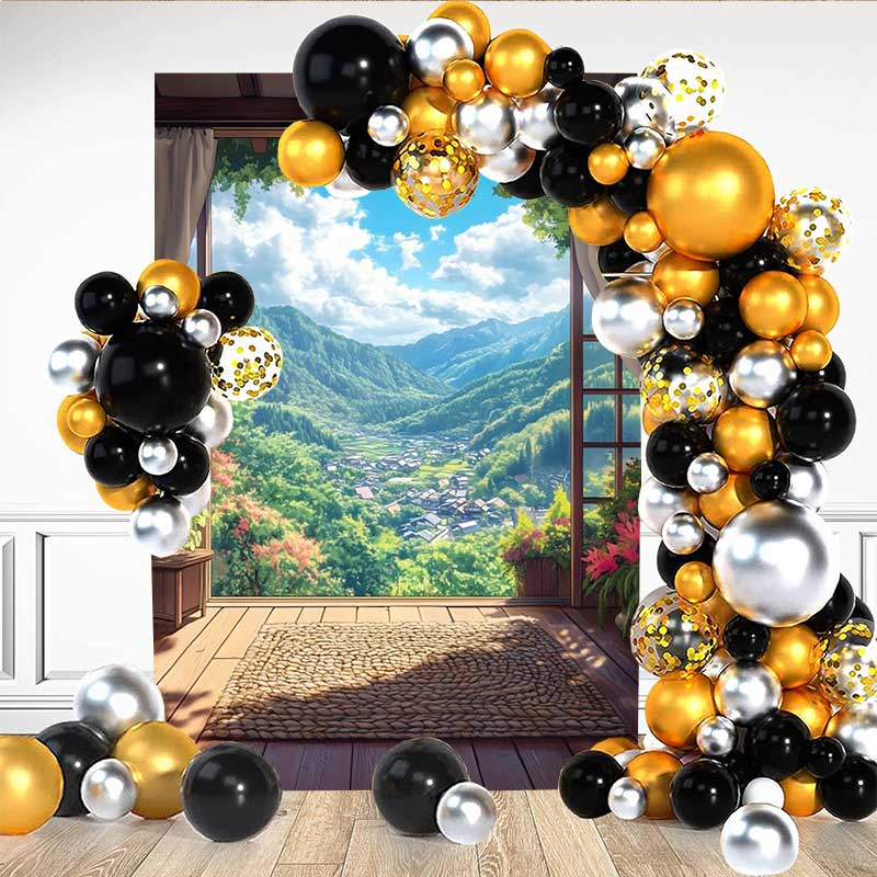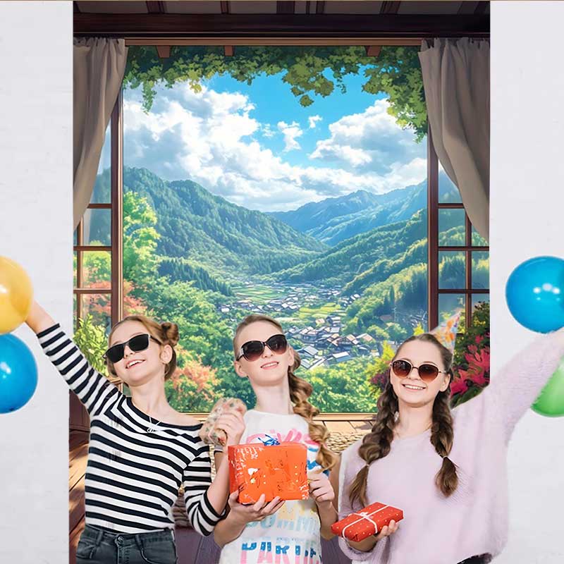 Lofaris Mountain Valley Terrace Backdrop, Rectangular Woven Mat and Scenic View of Forest Village