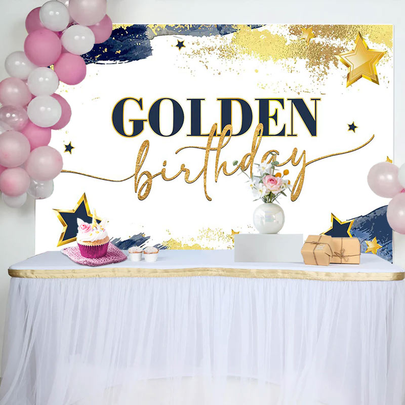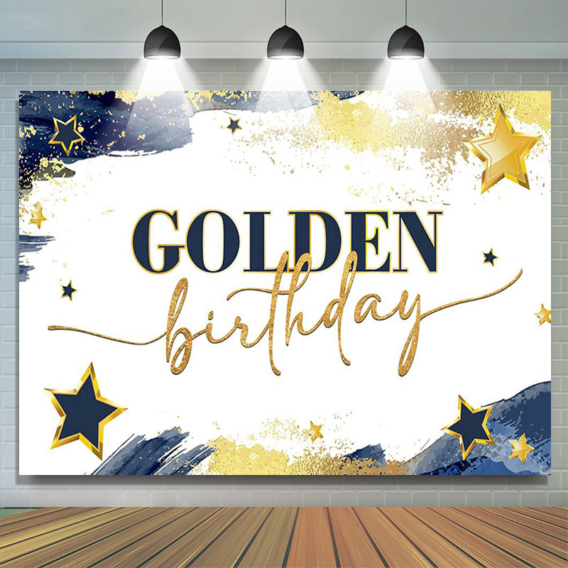 Lofaris Navy Blue Stars Golden Happy Birthday Party Backdrop