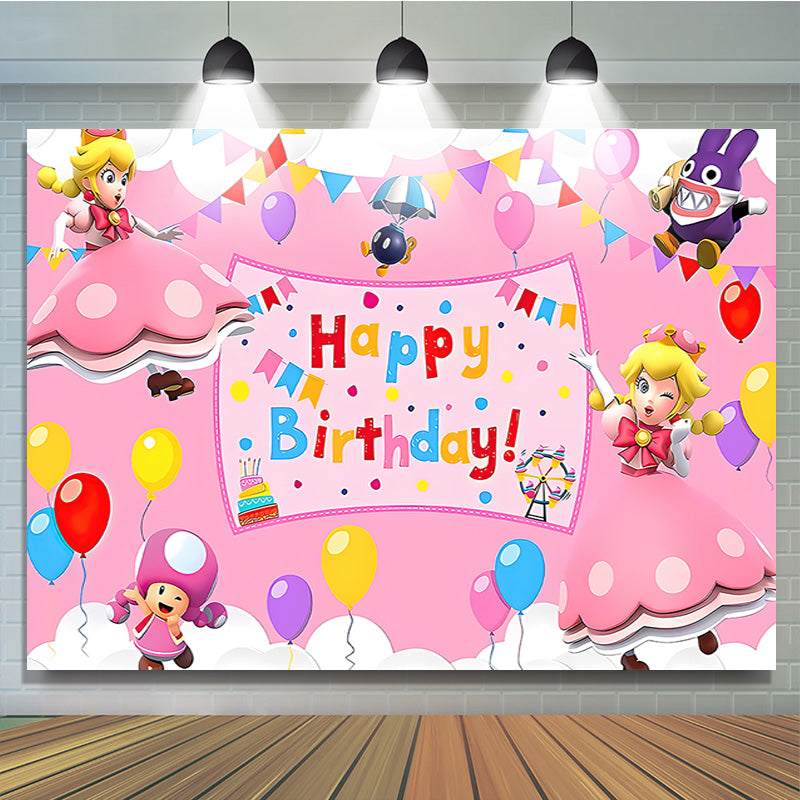 Lofaris Peach Princess Happy Birthday Backdrop for Girls