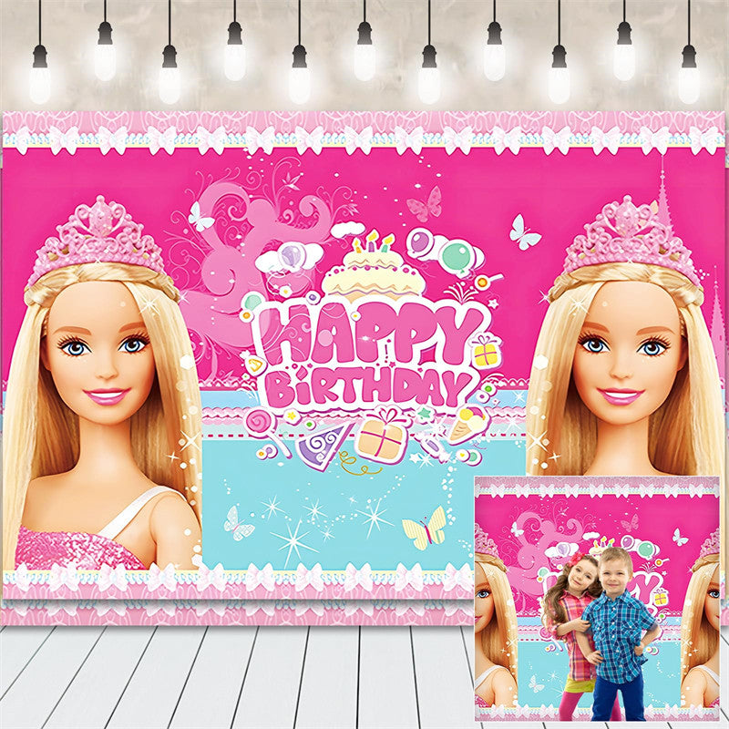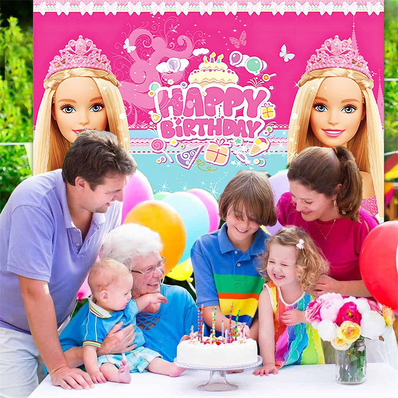 Lofaris Pink Cartoon Princess Theme Party Birthday Backdrop