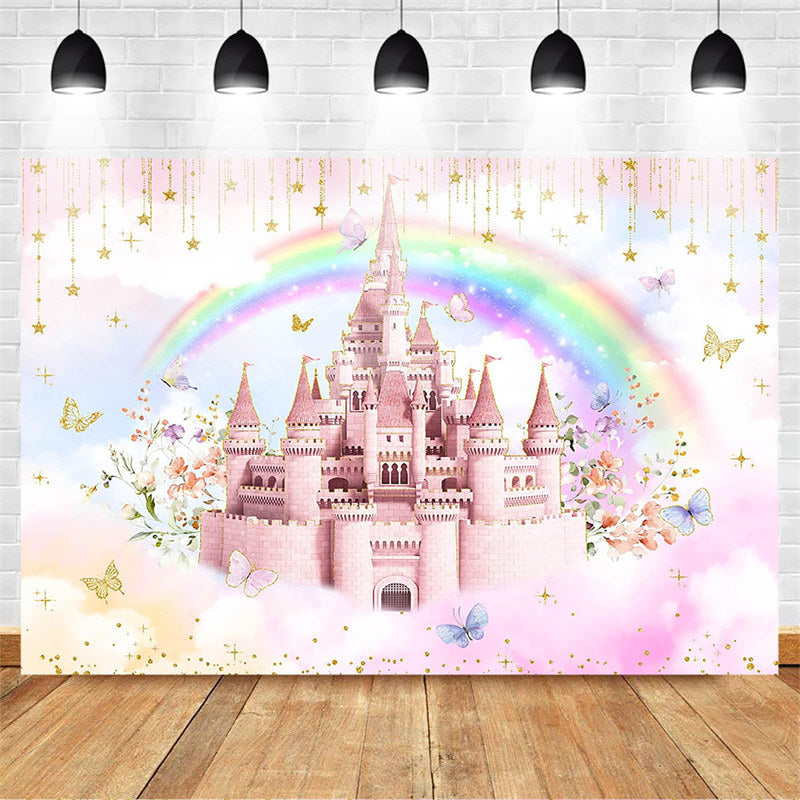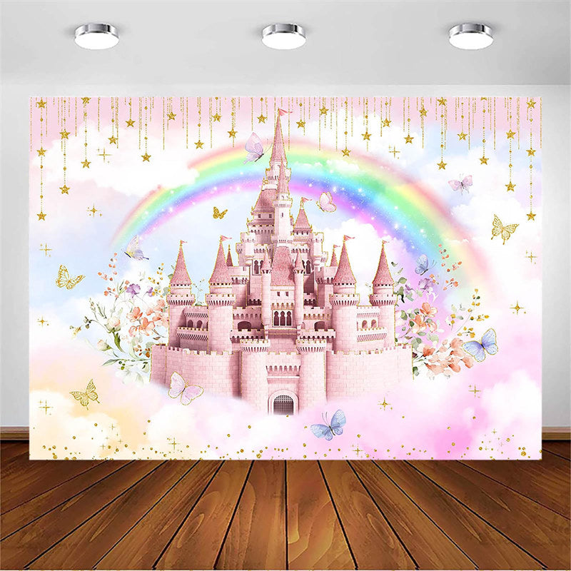 Lofaris Pink Castle Rainbow Princess Birthday Backdrop