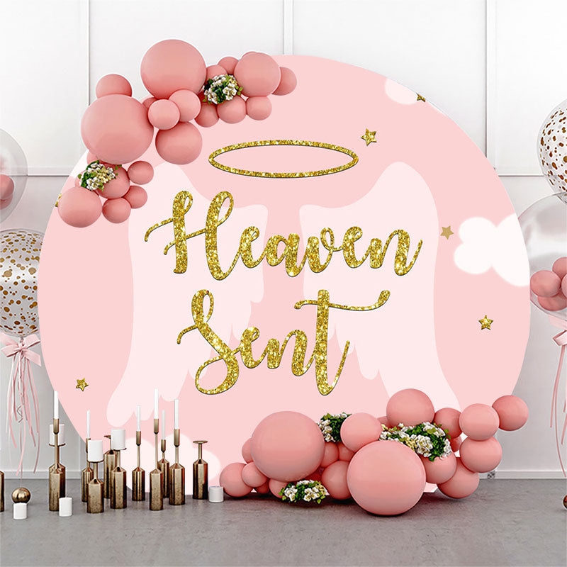 Lofaris Pink Cloud Gold Glitter Heaven Sent Round Backdrop