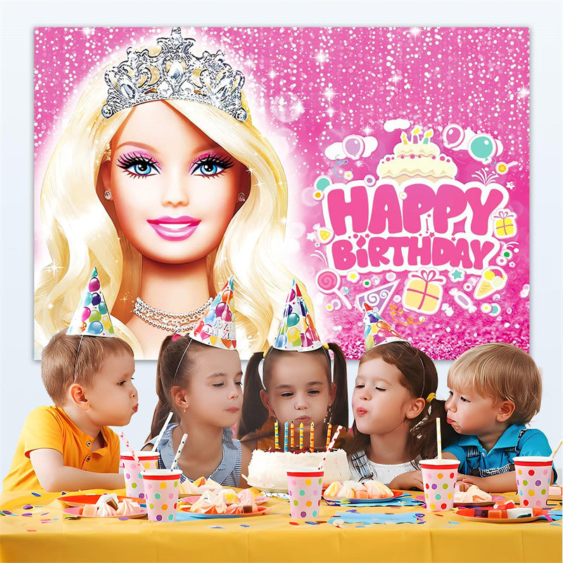 Lofaris Pink Glitter Princess Birthday Party Backdrop