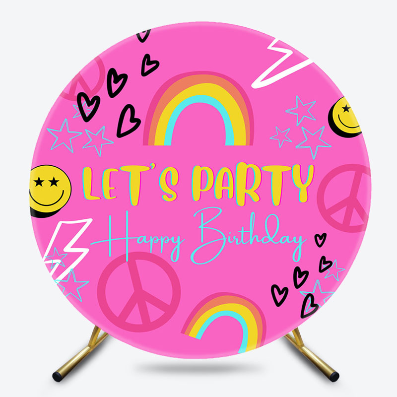 Lofaris Pink Rainbow Groovy Round Birthday Party Backdrop
