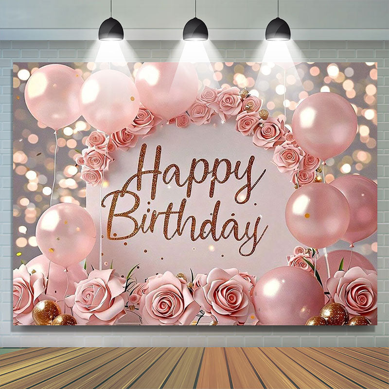 Lofaris Pink Rose Balloon Glitter Birthday Backdrop