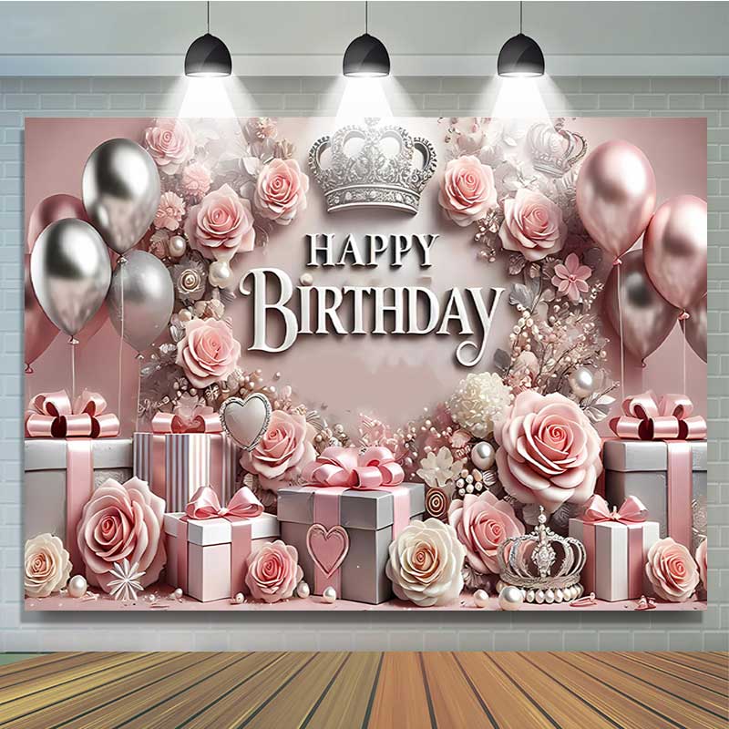 Lofaris Pink Rose Silber Crown Birthday Party Backdrop