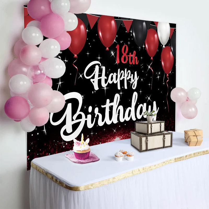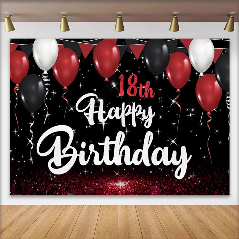 Lofaris Red and Black 18th Happy Birthday Backdrop, Glitter Floor and Balloons Background, Starry Night Party Decor