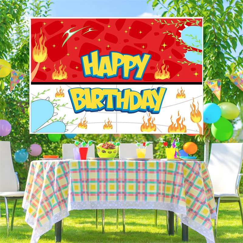 Lofaris Red Flame Cartoon Happy Birthday Party Backdrop