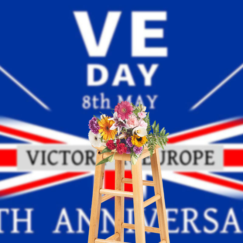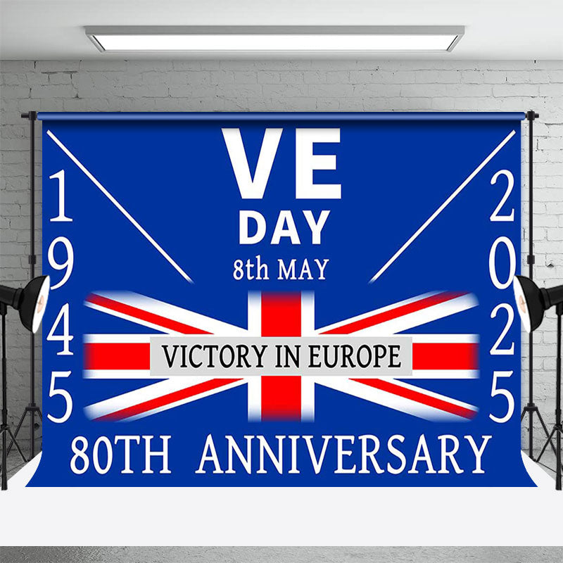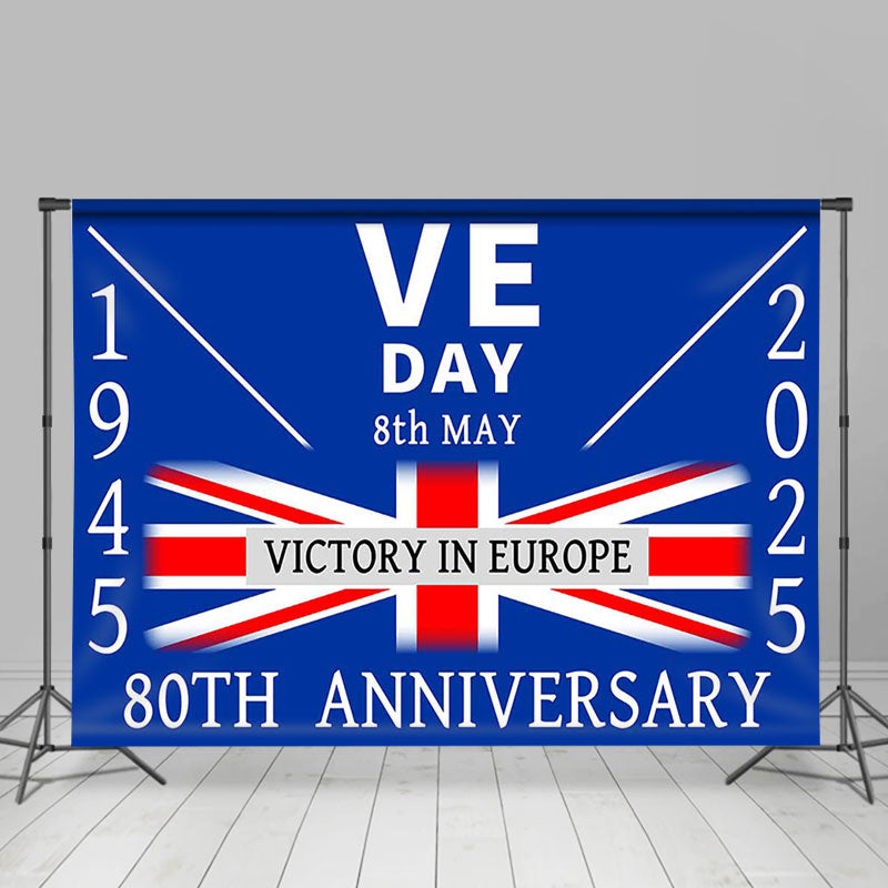 Lofaris Retro Blue Uk Flag Commemorates VE Day Backdrop