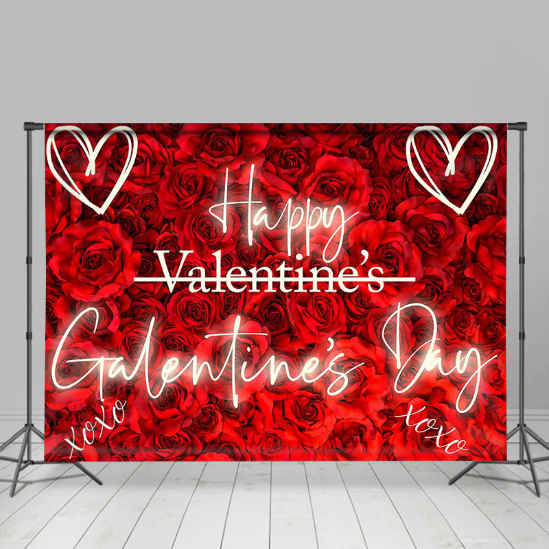 Lofaris Romantic Red Rose Gold Happy Galentines Day Backdrop