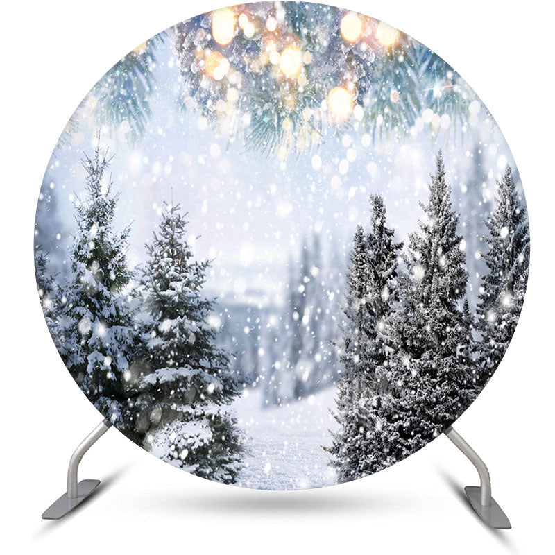Lofaris Round Snowy Pine Trees Light Bokeh Winter Backdrop