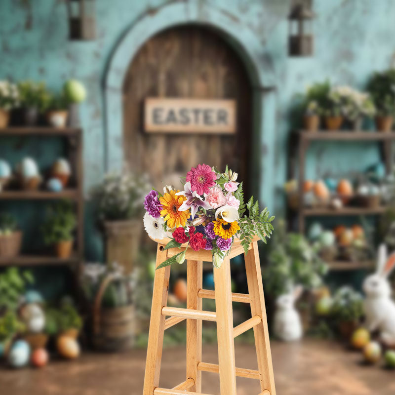 Lofaris Rustic Retro Teal Wall Eggs Bunny Easter Backdrop