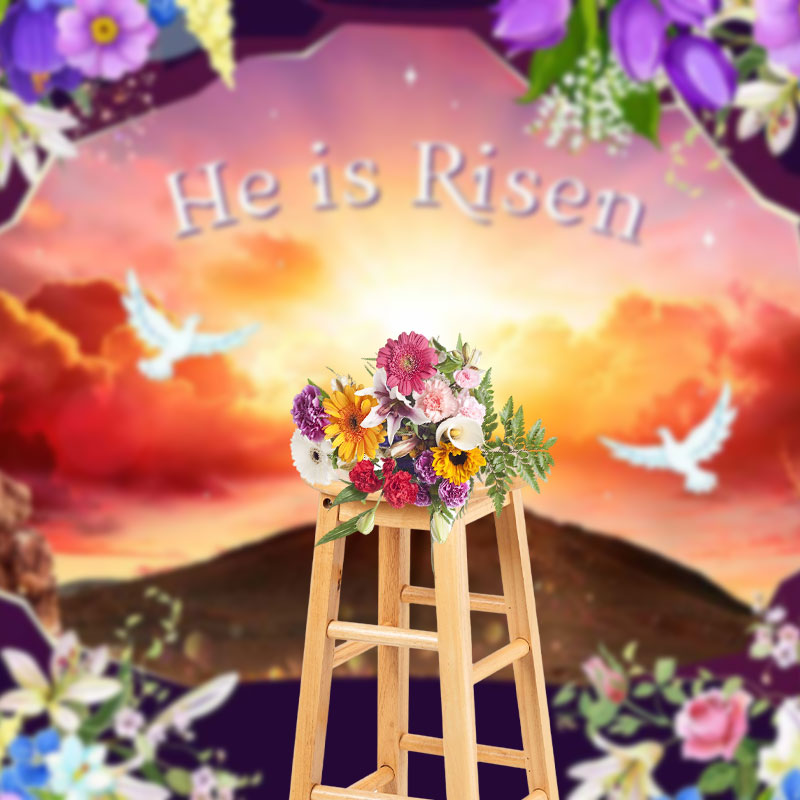 Lofaris Sunset Hills Cross Floral He Is Risen Easter Backdrop