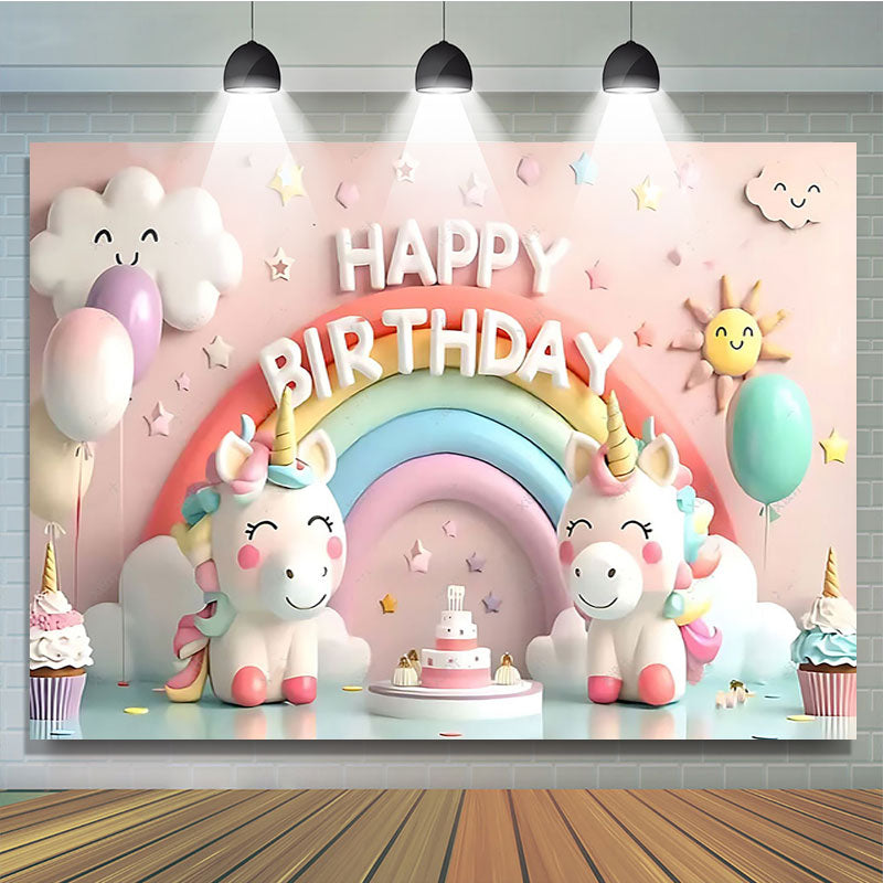 Lofaris Sweet Rainbow Unicorn Birthday Cake Smash Backdrop