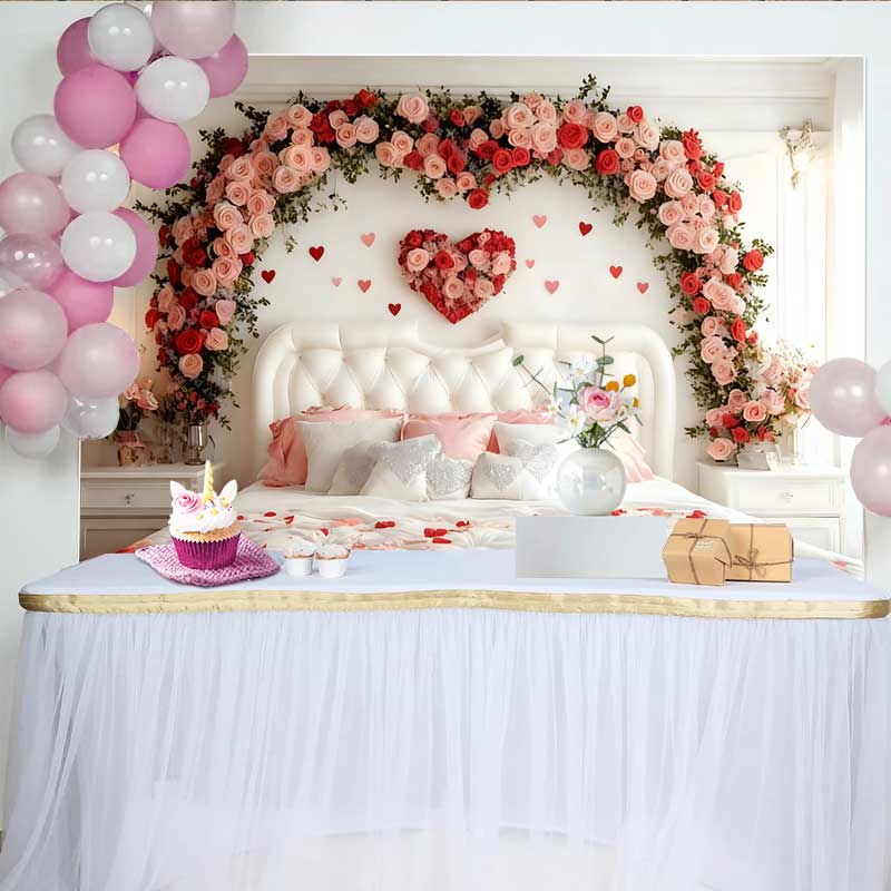 Lofaris Valentine's Day Backdrop, Pink Rose Floral Arch Bedroom White Headboard Decor